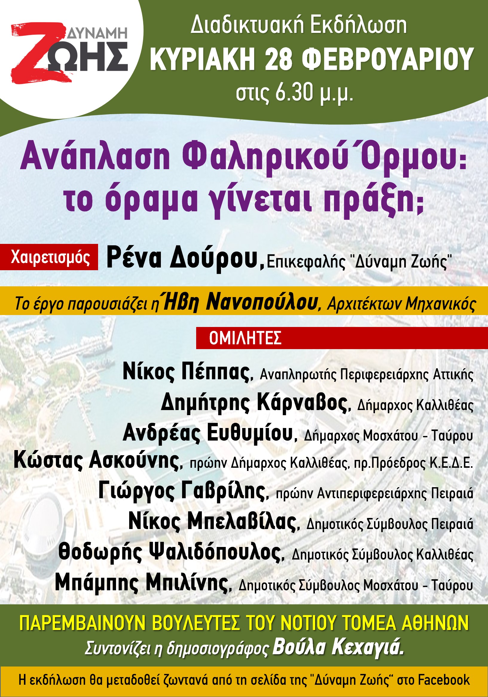 Η εκδήλωση θα μεταδοθεί ζωντανά από τη σελίδα στο Fb της Δύναμης Ζωής.