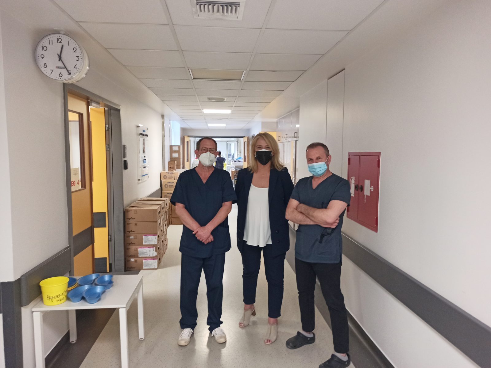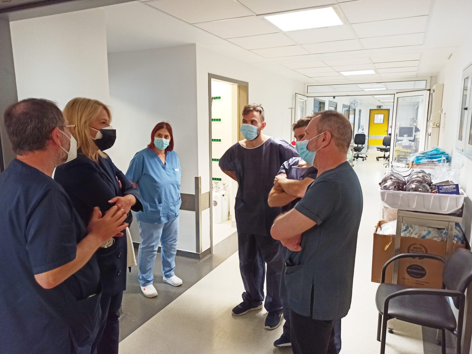 Η Ρένα Δούρου μίλησε με νοσηλευτές και νοσηλεύτριες, στηλιτεύοντας τη νεοφιλελεύθερη ιδεοληψία της κυβέρνησης που εδώ και 22 μήνες αρνείται να προχωρήσει στην πρόσληψη του αναγκαίου νοσηλευτικού και ιατρικού προσωπικού, να τους εντάξει στο καθεστώς των βαρέων και ανθυγιεινών επαγγελμάτων καθώς να άρει την αναστολή των αδειών τους. Παράλληλα περιηγήθηκε στους χώρους των σύγχρονων μηχανημάτων που έχουν αγοραστεί και εγκατασταθεί στο πλαίσιο του προγράμματος της Διοίκησης της Δύναμης Ζωής για τη στήριξη όλων των δημόσιων νοσοκομείων του ΕΣΥ στην Αττική. Όπως τον ψηφιακό στεφανιογάφο (αξίας 600.000 ευρώ), τις 18 κλίνες ΜΕΘ (αξίας 180.000 ευρώ), τους 10 αναπνευστήρες για ΜΕΘ (αξίας 150.000 ευρώ), τρία συστήματα παρακολούθησης φυσιολογικών παραμέτρων (συνολικής αξίας 565.000 ευρώ).