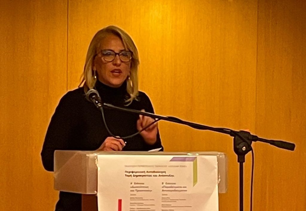 Η Α. Τσάτσου – Παπαδημητρίου, Νομικός, π. Αντιπεριφερειάρχης Αττικής, επικεντρώθηκε στις προϋποθέσεις επιτυχίας των μεταρρυθμίσεων στην Τοπική Αυτοδιοίκηση, επισημαίνοντας ότι “δεν μπορούμε να μιλάμε για ουδέτερη μεταρρύθμιση”. “Στην Ελλάδα οι προϋποθέσεις επιτυχίας έχουν μεγάλο βαθμό συνθετότητας και πολυπλοκότητας, συγκριτικά με άλλες χώρες στην Ευρώπη. Γιατί τα αυτονόητα, τα κεκτημένα, διαφέρουν από χώρα σε χώρα”. “Εκτός από τους πολλούς νόμους έχουμε και απίστευτη εμπλοκή, και γενική, δυσλειτουργία στο επίπεδο των συναρμοδιοτήτων σε όλον το δημόσιο χώρο”. “Μεταρρύθμιση για μένα σημαίνει την πλήρη αναδιάρθρωση αρμοδιοτήτων που στοιβάζονται σε συνέχεια δεκαετιών στην πλάτη δήμων κοινοτήτων, νομαρχιών τότε και περιφερειών σήμερα, ενώ πολλές από αυτές δεν απαντούν σε καμία πραγματική κοινωνική ανάγκη. Μεταρρύθμιση σημαίνει πως ξεκαθαρίζω όσο γίνεται τις συναρμοδιότητες και μειώνω τις υπογραφές”. “Νομίζω ότι έχουμε πολύ δρόμο ακόμη για να καταλάβουμε ότι θεωρία έχουμε αρκετή, πράξη και τρόπο εφαρμογής λιγότερη. Πρέπει οι μεταρρυθμίσεις να γίνονται κτήμα της κοινωνίας, ώστε να μπορούν να αφομοιώνονται και να έχουν έτσι επιτυχία”. Παρατήρησε τέλος ότι “πως το μεγάλο στοίχημα για την Αυτοδιοίκηση και την πολιτική άλλωστε είναι οι πολίτες να τις επανανακαλύψουν. Οι συνθήκες είναι δύσκολες. Μήπως είναι μια καλή ευκαιρία ακριβώς γι’ αυτό;”