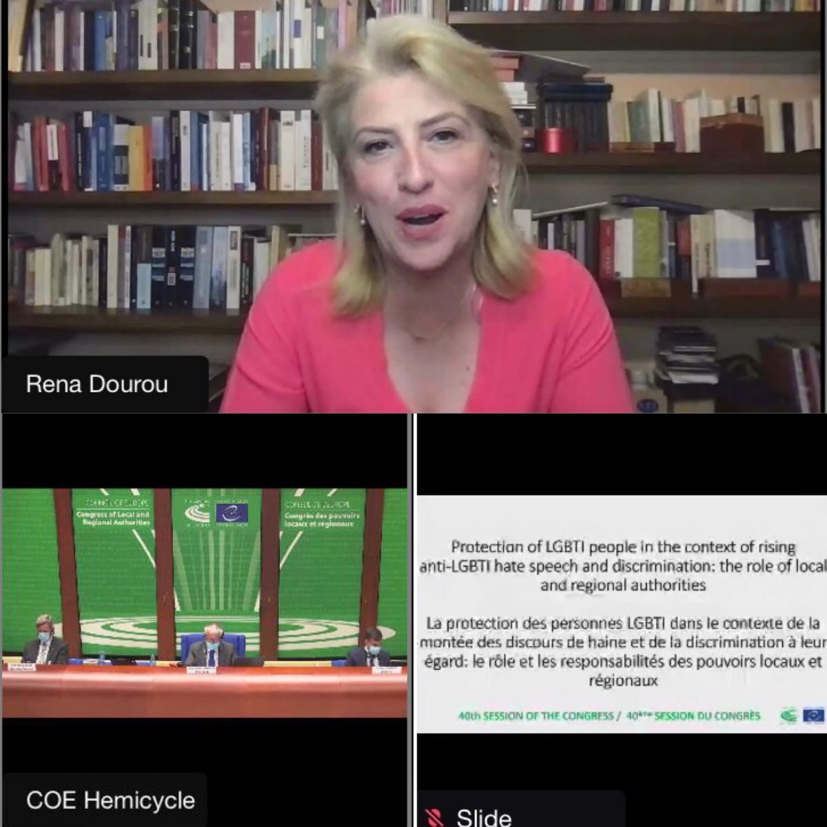 Η προστασία των δικαιωμάτων της ΛΟΑΤΚΙ κοινότητας ήταν το αντικείμενο της παρέμβασης της Ρένας Δούρου, στη συνέχεια των εργασιών της Ολομέλειας, με αφορμή την έγκριση Έκθεσης για το ρόλο των Τοπικών και Περιφερειακών Αρχών απέναντι στην άνοδο διακρίσεων και έκφρασης μίσους κατά της ΛΟΑΤΚΙ κοινότητας, στην Ευρώπης και ειδικότερα στην Πολωνία. “Δεν πρέπει να επιτρέψουμε να γίνει η πανδημία το πρόσχημα για την υποβάθμιση της δημοκρατίας, των ανθρωπίνων δικαιωμάτων, του κράτους δικαίου”, παρατήρησε η Ρένα Δούρου, υπογραμμίζοντας ότι “πόλεις και οι περιφέρειές μας οφείλουν να πρωταγωνιστήσουν στην κοινή προσπάθεια για κοινωνική συνοχή, αποδοχή της διαφορετικότητας, απόρριψη κάθε μορφής ρατσισμού”. “Έχουμε τη δύναμη να κάνουμε τη διαφορά, αν και πολλές φορές μπορεί να μας λείπουν τα μέσα, εκείνο που δεν πρέπει να μας λείπει είναι η πολιτική βούληση”. Η ίδια ανέδειξε την ανάγκη να απαλλάξουμε τις πόλεις και τις περιφέρειές μας από ανισότητες, διακρίσεις και βία κατά της ΛΟΑΤΚΙ κοινότητας και άλλων ευάλωτων ομάδων. “Το θέμα αυτό δεν αφορά λίγους αλλά τους πάντες”.