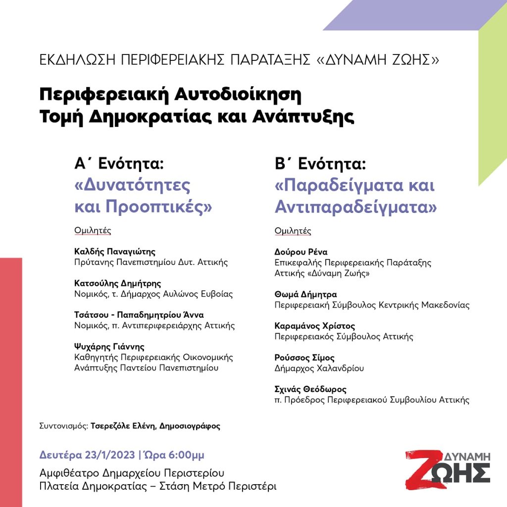 Η «Δύναμη Ζωής» στηρίζει τον «Αττικό Κύκλο Συνεργασίας και Εμπιστοσύνης» με τον Γιώργο Ιωακειμίδη – Για να σταματήσει ο σημερινός αντιδημοκρατικός, αντιαναπτυξιακός και αντικοινωνικός κατήφορος της Περιφέρειας Αττικής
